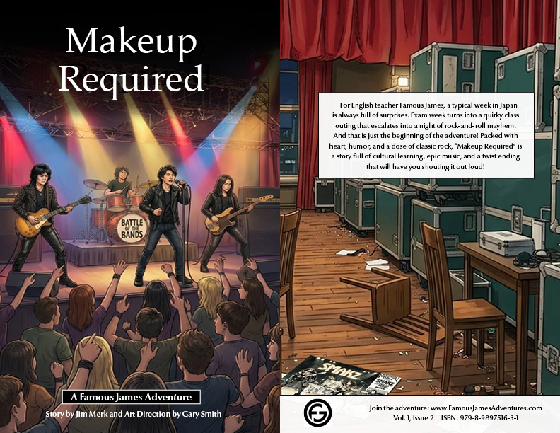 LOS ANGELES, CA, UNITED STATES, March 31, 2026 /EINPresswire.com/ -- Yoimono LLC today released Makeup Required, the second illustrated short story in the Famous James Adventures series. The story follows an English teacher and his adult students through a week of exam prep, a battle of the bands competition, and a crazy request from the owner.